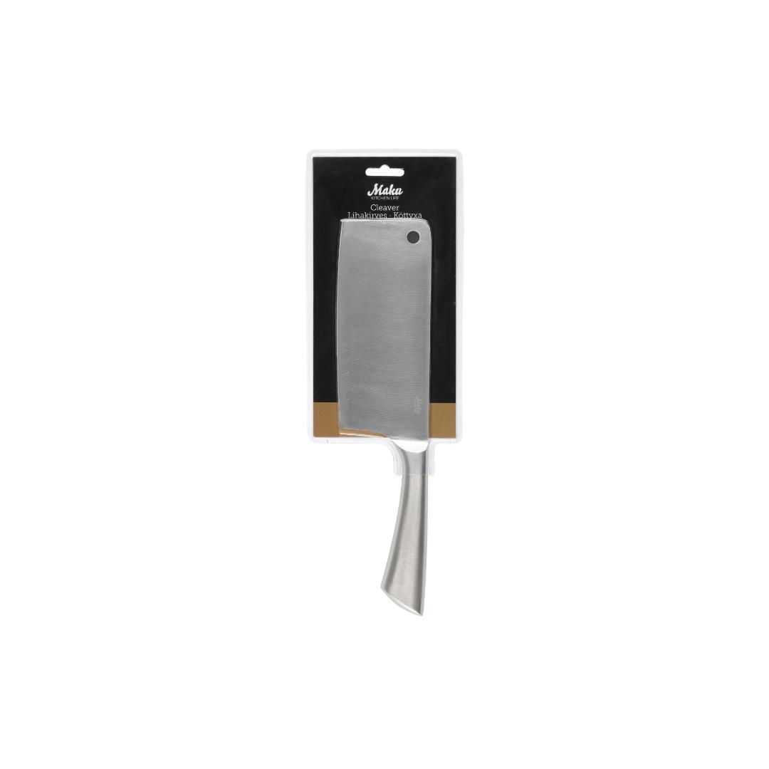 Maku Kitchen Life Basic kokkekniv/kløver er en kraftig hakke- og kuttekniv til både grønnsaker og kjøtt med bein, som for eksempel fjærkre. Den brede formen gjør den også velegnet som allround-kniv til mye av det daglige kjøkkenarbeidet. Kniven er laget i rustfritt stål og ligger godt i hånden ved grovere kutting. For lengre levetid og skarphet anbefales håndvask.