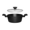 Lett og brukervennlig gryte i smidd aluminium med non-stick belegg og bunn i rustfritt stål. Varmebestandige, romslige bakelitthåndtak. Glasslokk med dampventil. Passer alle komfyrtyper. Tåler oppvaskmaskin (håndvask anbefales).