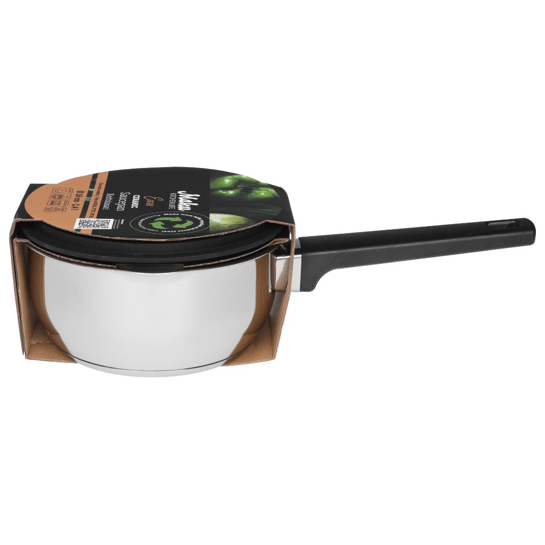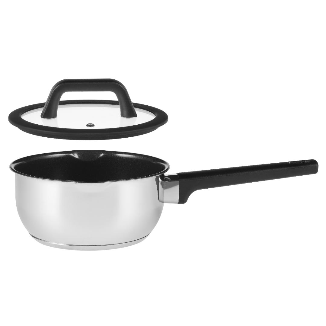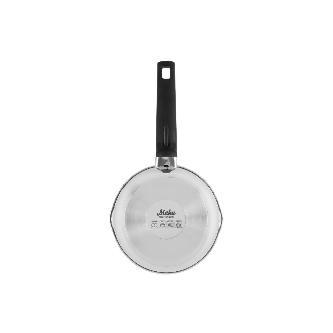 Maku Kitchen Life Ease kasserolle med lokk keramisk 1,4 L 16 cm er en stålkjele med praktiske detaljer for enkel bruk. Den har helletut som gjør det lettere å helle av vann, og et herdet glasslokk med dampventil og tett silikonkant som holder lokket godt på plass. Innvendig keramisk belegg gir god slipp, og den effektive 5 mm bunnen sørger for jevn varme på alle platetopper. Kasserollen har kapasitet på 1,4 liter og kan vaskes i oppvaskmaskin.