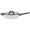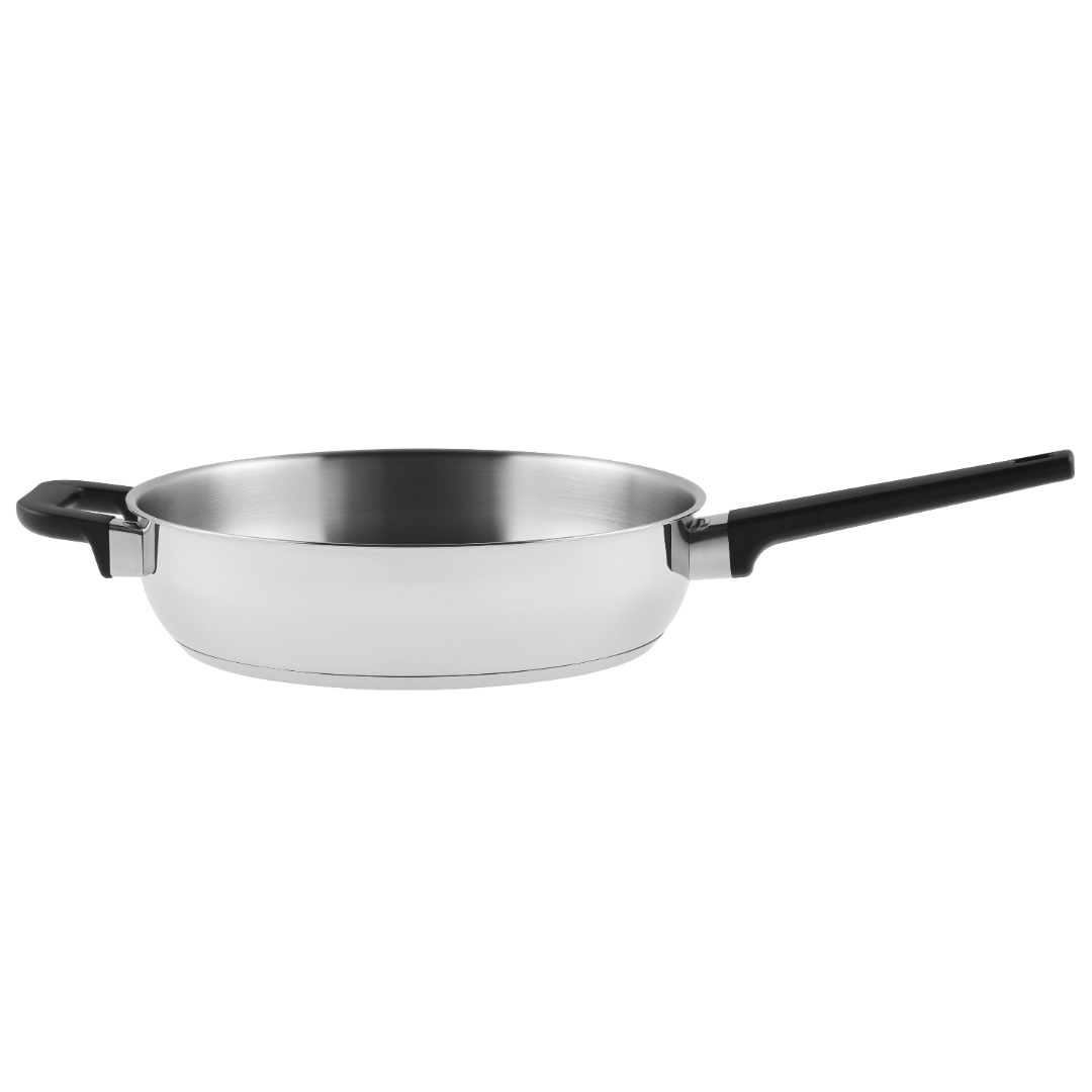 Allsidig sauterpanne i rustfritt stål for daglig matlaging. Effektiv 5 mm bunn gir rask og jevn varme. Glasslokk med silikonlist holder på smak og fuktighet. Laget av resirkulert stål og passer alle platetyper. Tåler oppvaskmaskin.