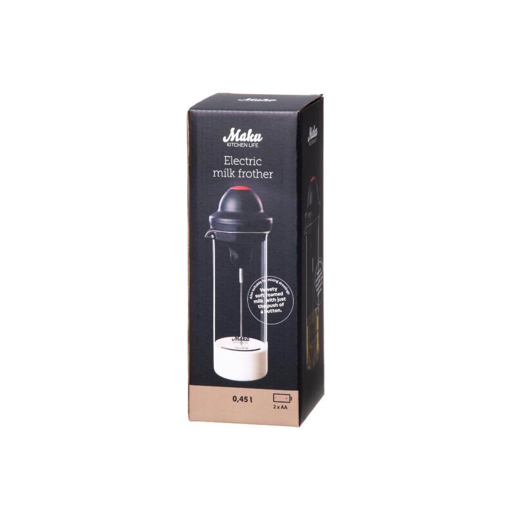 Elektrisk melkeskummer fra Maku. Volum: 450 ml. Mål: 8,5 x 8,8 x 22 cm.