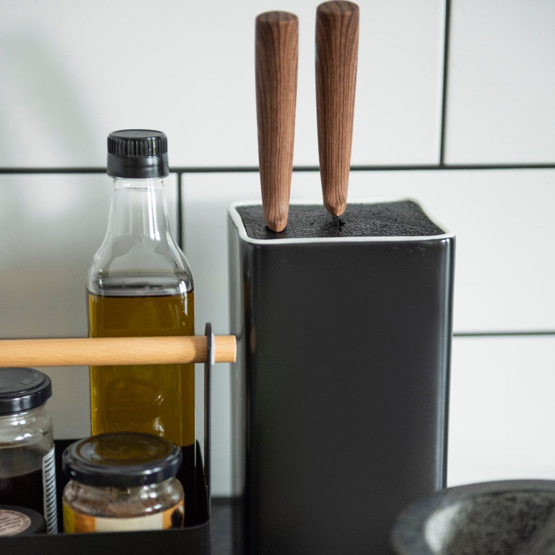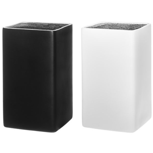 Firkantet knivblokk som holder knivene skarpe. Bland og match kniver på ett praktisk sted. Laget av porselen, innvendig nylonbust. Passer til forskjellige typer og størrelser kniver. Innvendige buster er avtagbare, noe som gjør rengjøringen enklere. Håndvask.