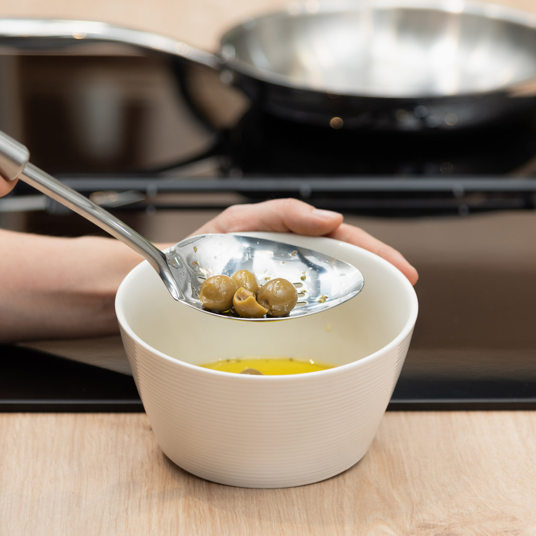 Solid hullskje laget av rustfritt stål. Tåler vask i oppvaskmaskin. Lengde: 31 cm.