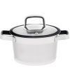 Maku gryte i rustfritt stål. Glasslokk med silkon pakning og ventil. Størrelse: ќ=18 cm. Høyde 10,5 cm. Volum: 2,2 liter.