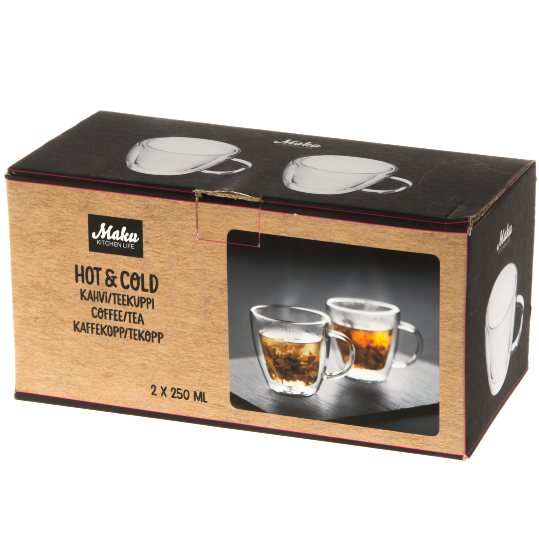 Disse elegante krusene holder kjølige drikker kjølige og varme drikker varme lenger. Krusene er laget av dobbeltvegget varmebestandig glass. Kapasitet 25 cl.