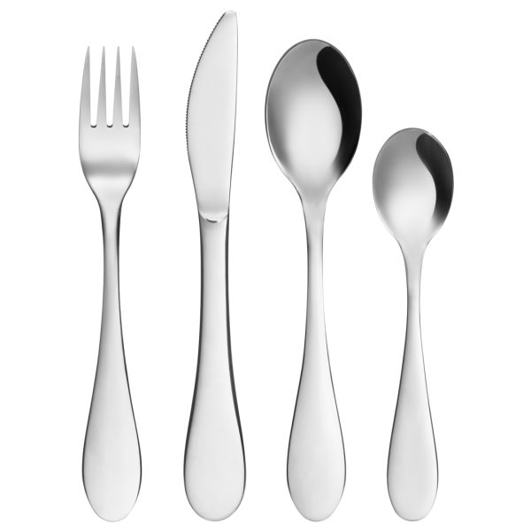 Maku barnebestikk. Inneholder: Kniv, gaffel, skje og teskje. Kan vaskes i oppvaskmaskin.
