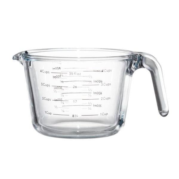 Maku Kitchen Life litermål 1,0 L er en romslig glassmålekopp med klare målestreker for presis oppmåling av både tørre og flytende ingredienser. Helletuten gjør det enkelt å helle uten søl. Den er laget i borosilikatglass og tåler både stekeovn, mikrobølgeovn, fryser og oppvaskmaskin, slik at du kan bruke samme kopp til oppvarming, nedkjøling og servering.