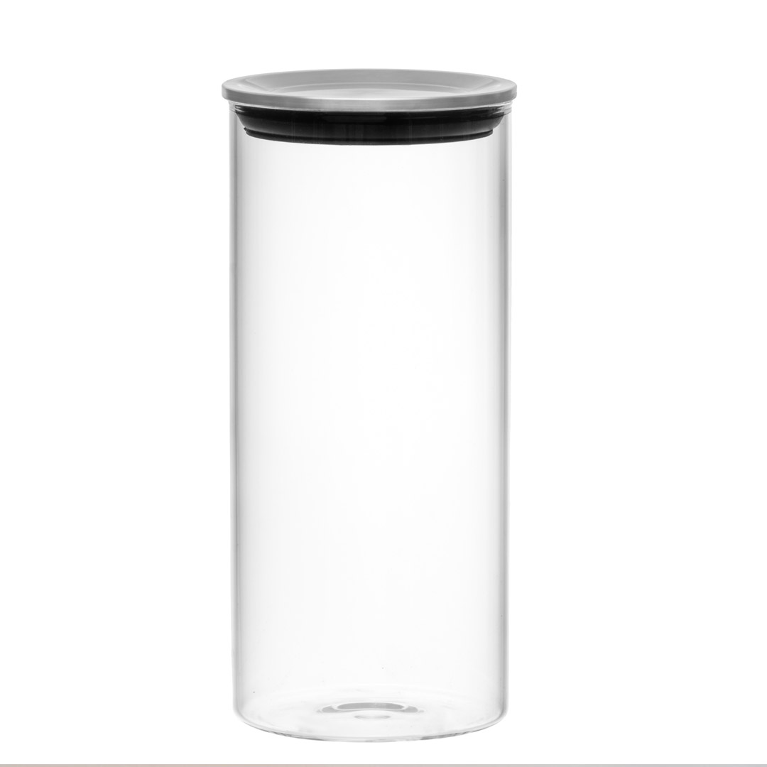 Organiser kjøkkenkaos med stilige Maku Kitchen lives oppbevaringskrukker. Bruk glassene til å organisere tørr mat som pasta, ris, mel og frokostblandinger. Enkelt å se hva som er i glasset og om du trenger å fylle på. Dekorativ oppbevaringskrukke med tettsittende lokk i metall med silikonring. Glasskrukke tåler oppvaskmaskin, håndvask med lokk. Mål: ќ10,5 cm Høyde: 12,5 cm.