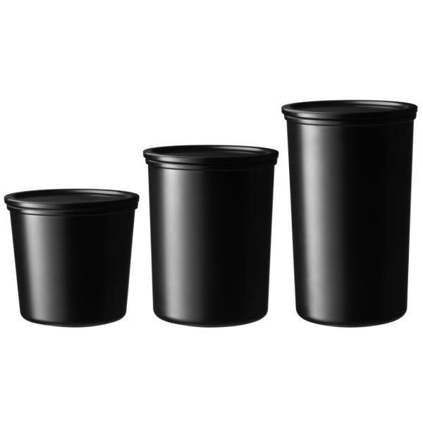 Sett med tre oppbevaringsglass laget av 73 % resirkulert rPET. Mørk utførelse beskytter innholdet mot lys, og tett lokk gir god holdbarhet. Tåler mikrobølgeovn og oppvaskmaskin. Varmebestandig opptil 145 °C.