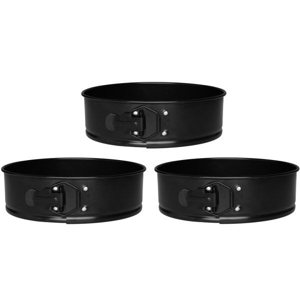 Sett med tre springformer. 1 x 22 cm (2,85 liter), 1 x 24 cm (3,16 liter) og 1 x 26 cm. (3,7 liter). Karbon stål med non stick belegg. Maks temperatur 230 grader. Unngå oppvaskmaskin.