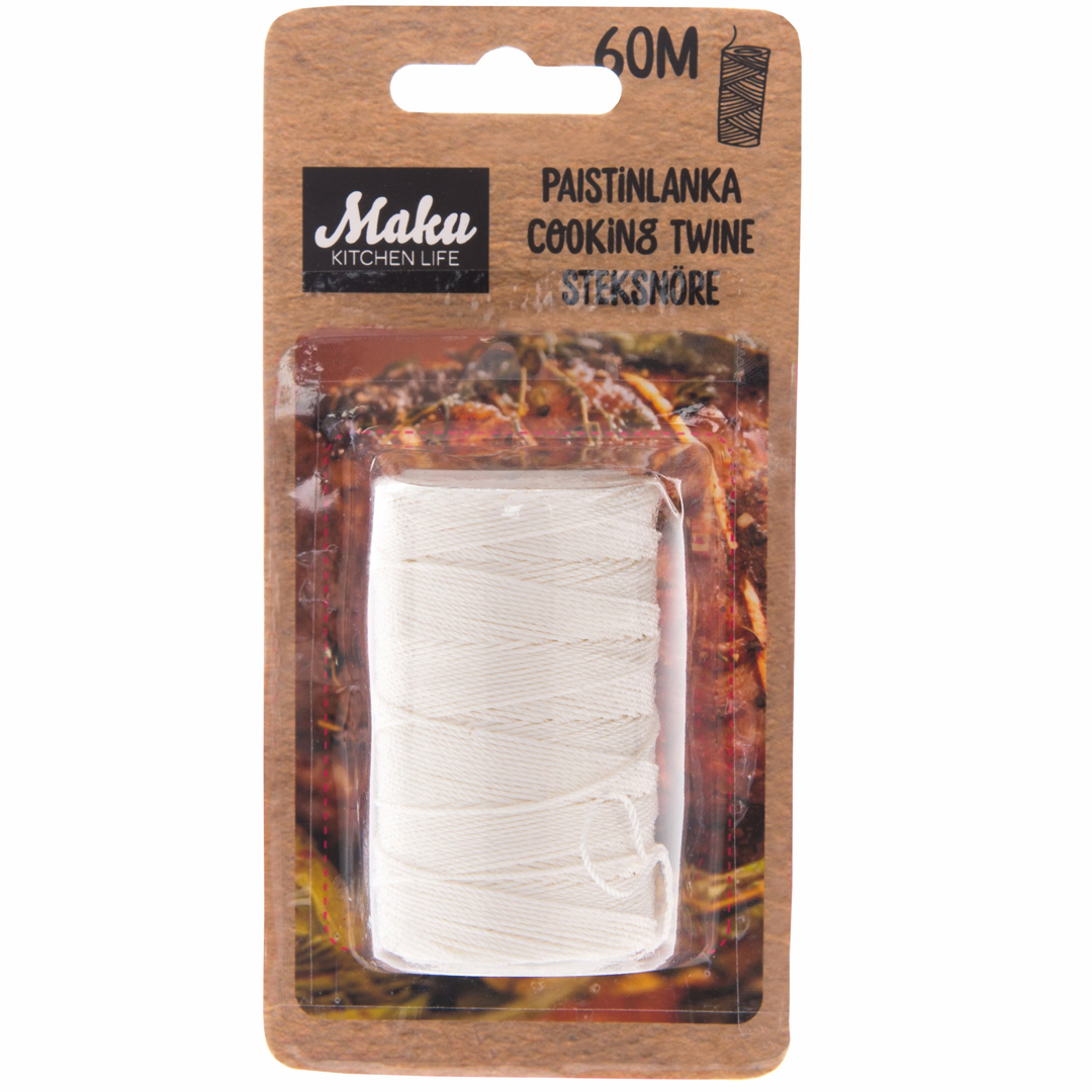 Maku stekesnøre i bomull på rull.