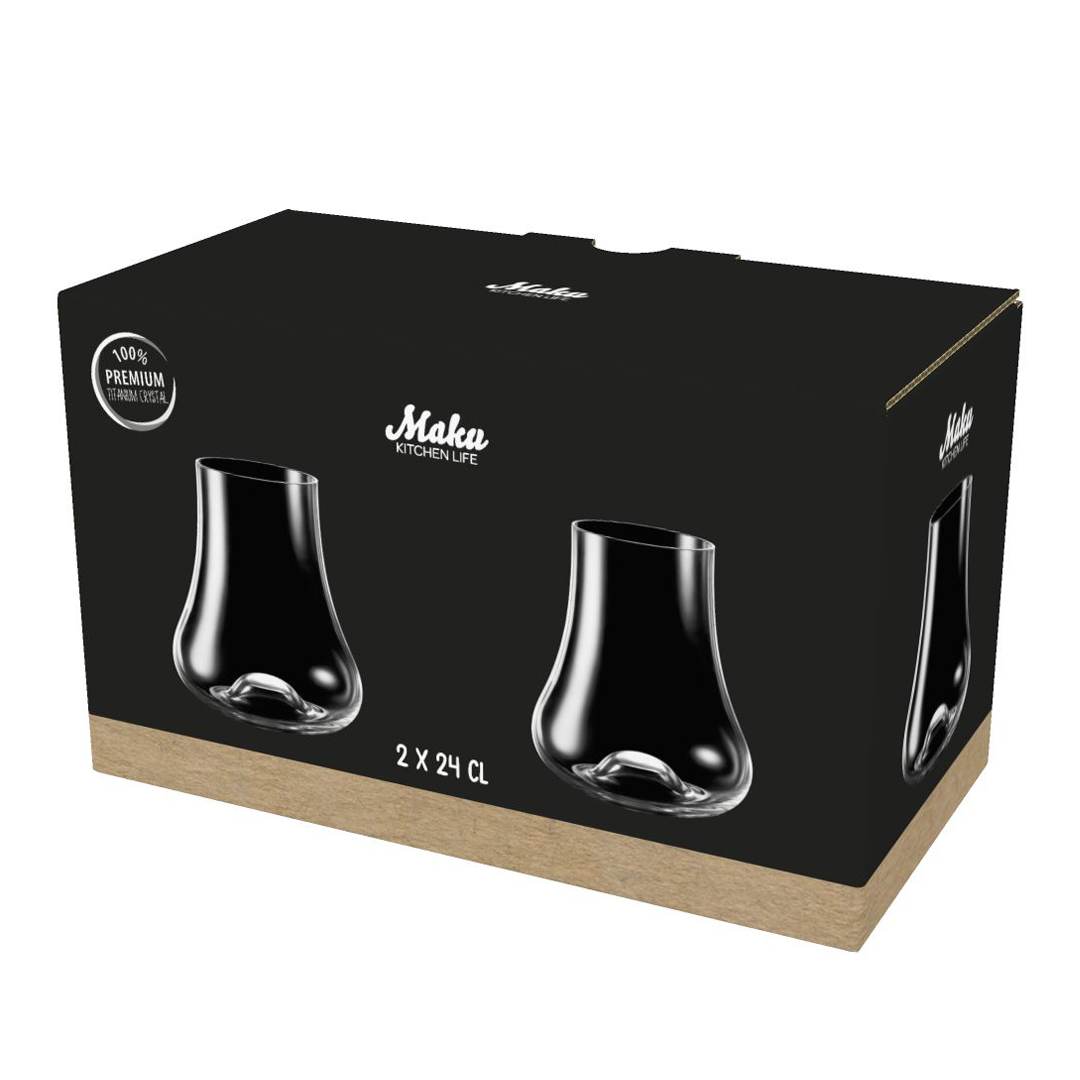 Den unike formen på disse whisky glassene bringer ut den beste smaken i whiskyen. Kan vaskes i oppvaskmaskin. Volum 24 cl.