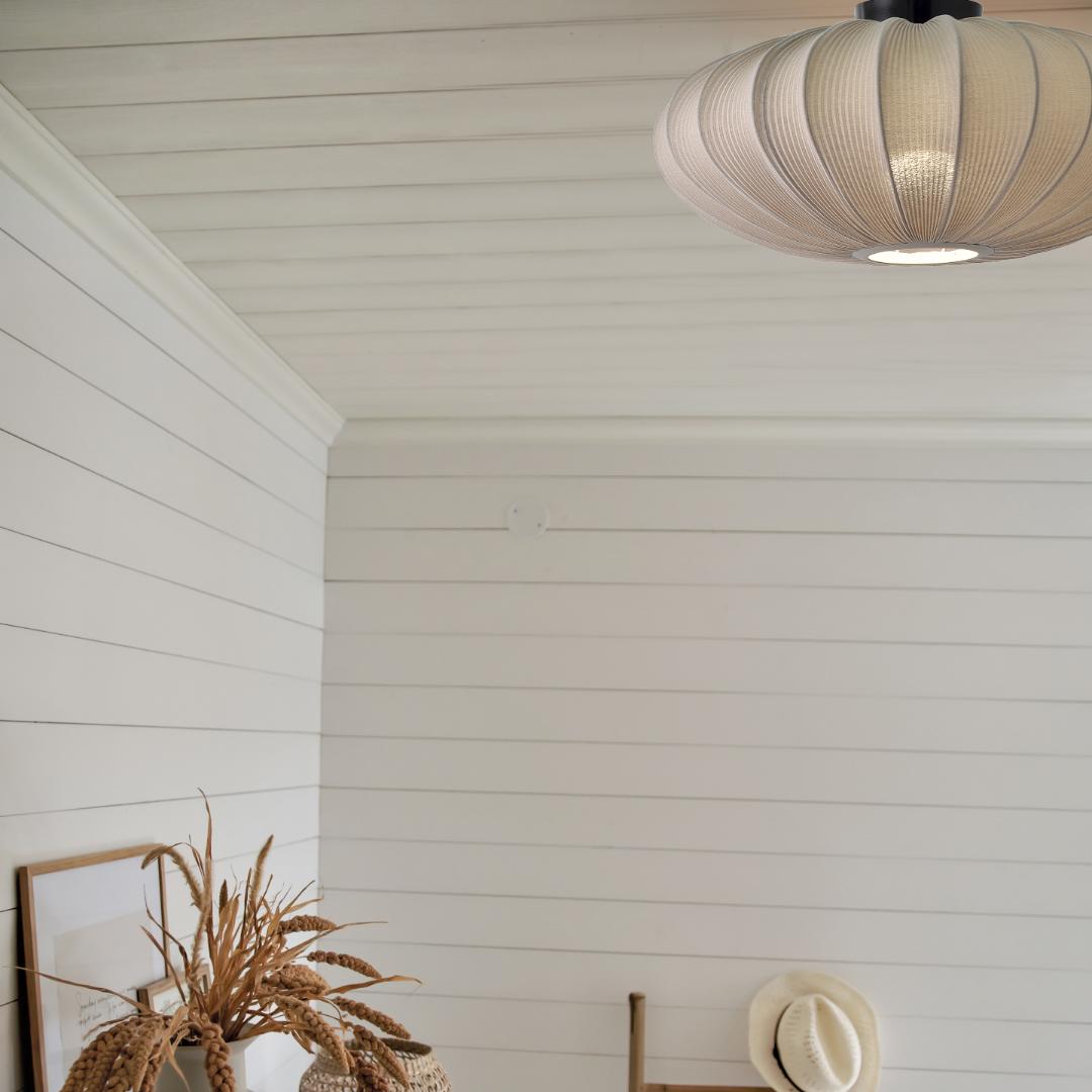 Mamsell plafond har en rund skjerm i plissert stretchstoff som gir et mykt og dempet lys. Den passer utmerket i soverom, stue eller gang, og kan kombineres med andre lamper i Mamsell-serien for en helhetlig stil.