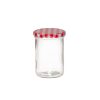 Sett med seks syltetøyglass fra Marjukka med rutete rødt og hvitt metallokk. Hvert glass rommer 440 ml og egner seg til syltetøy, marmelade og hermetisering. Lokket bør håndvaskes, mens glassene tåler oppvaskmaskin. Klassisk design som passer godt til sommerens bær og hjemmelaget syltetøy.