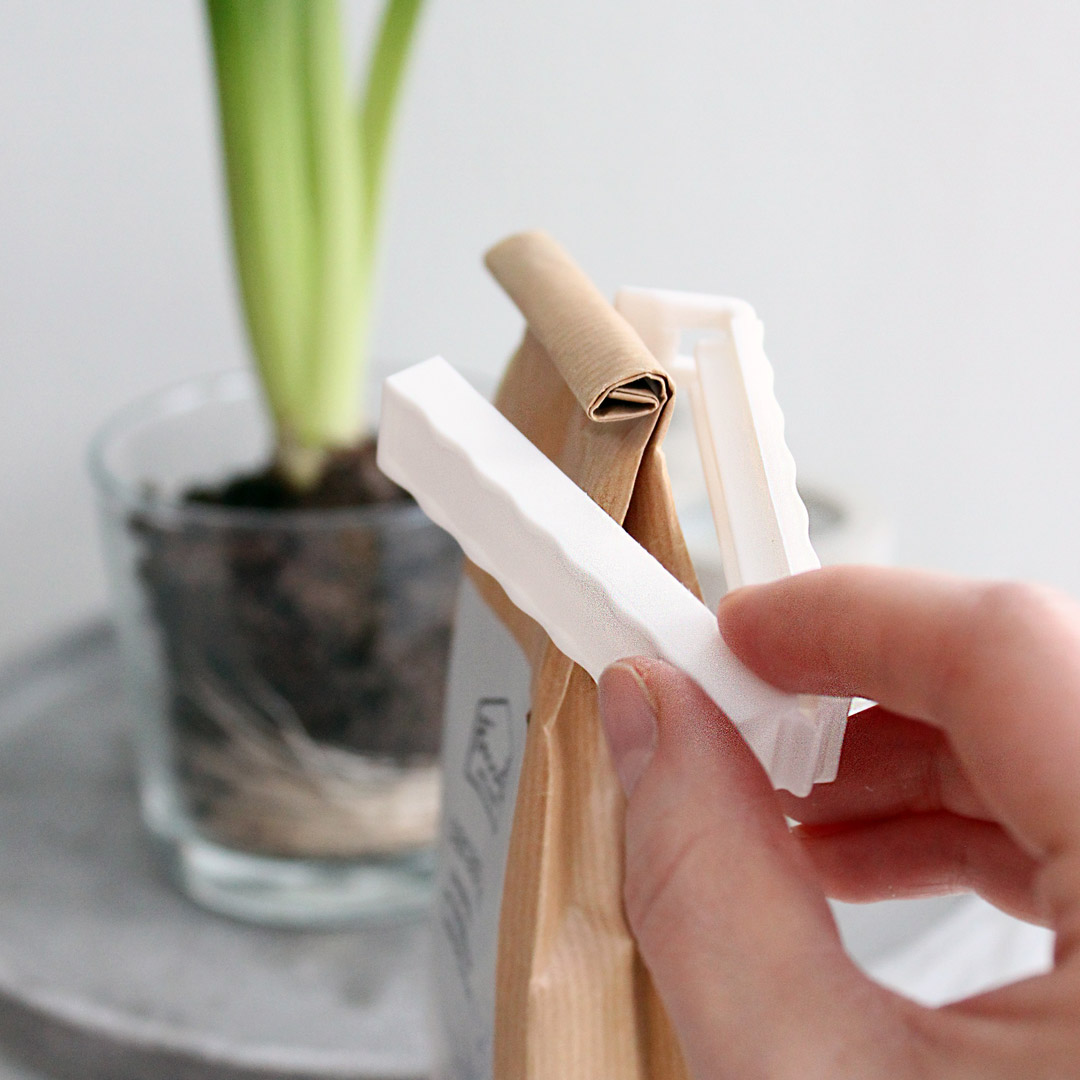 Lukker plastposene tett. Enkel å åpne og lukke.