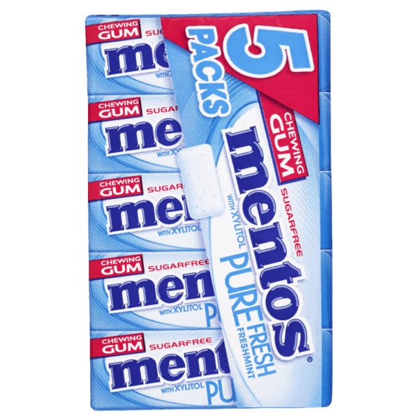 Mentos Pure Fresh tyggegummi i 5-pakk. Gir umiddelbart frisk smak og pust.