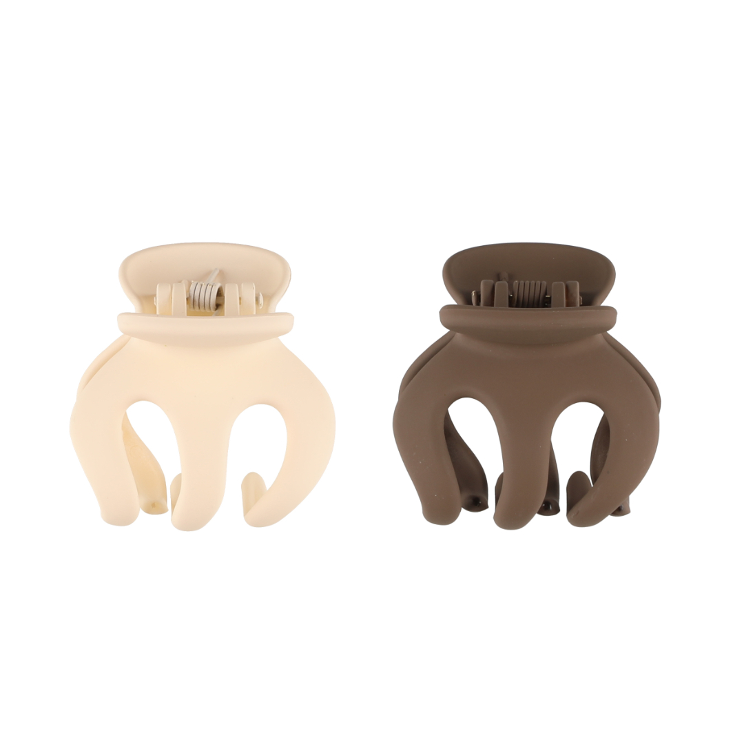 Sett med to hårklyper – én i cream og én i taupe. Praktiske klyper for rask oppsett av håret. Leveres på hangtag.