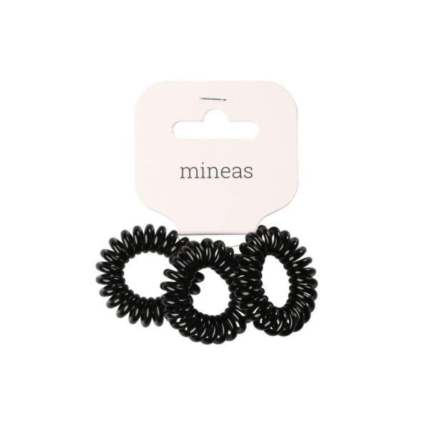 Spiralformede hårstrikker fra Mineas som sitter godt uten å lage merker i håret. Perfekte til både hverdagsbruk og trening, laget av slitesterk plast (TPU) i nøytral svart farge.