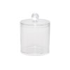 Gjennomsiktig boks med lokk til bomullspinner, hårstrikker, spenner og småtilbehør. Lokket hindrer støv på innholdet.