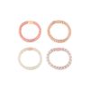 Fire flettede hårstrikker i rosatoner og gullnyanser. Gir godt hold uten å dra i håret – et fint lite sett for variasjon i hverdagen.