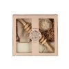 Spa-sett fra Mineas som inneholder tre forskjellige vaskekluter og en massasjebørste i tre. Settet kombinerer naturmaterialer som sisal, loofah, lin og tre, og passer godt til bruk hjemme på badet for avslappende hudpleie og kroppspleie. Leveres i brun gaveeske og passer både som egenpleie og gave.