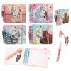 Mini notesett med spiralbundet notisbok og en liten kulepenn dekorert med hestehode-vedheng. Perfekt for skriblerier, notater eller undervisningsbruk.