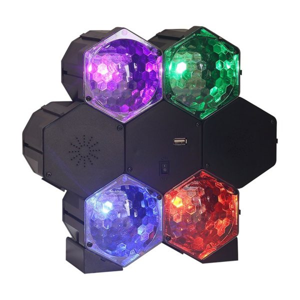 Ta med festen overalt med dette bærbare lys- og lydsystemet! Det har innebygd høyttalere som du kan spille musikk fra via USB-kabel eller Bluetooth. Den har også to lyseffekter: auto eller musikkontroll. De 4 forskjellige LED-lys lyser og lager en strobe-effekt. Pærene trengs ikke å byttes ut, fordi de har lang levetid. Lav varmegenerering og lav energibruk. Ideelt til å pynte huset til en fest eller for en bærbar DJ.