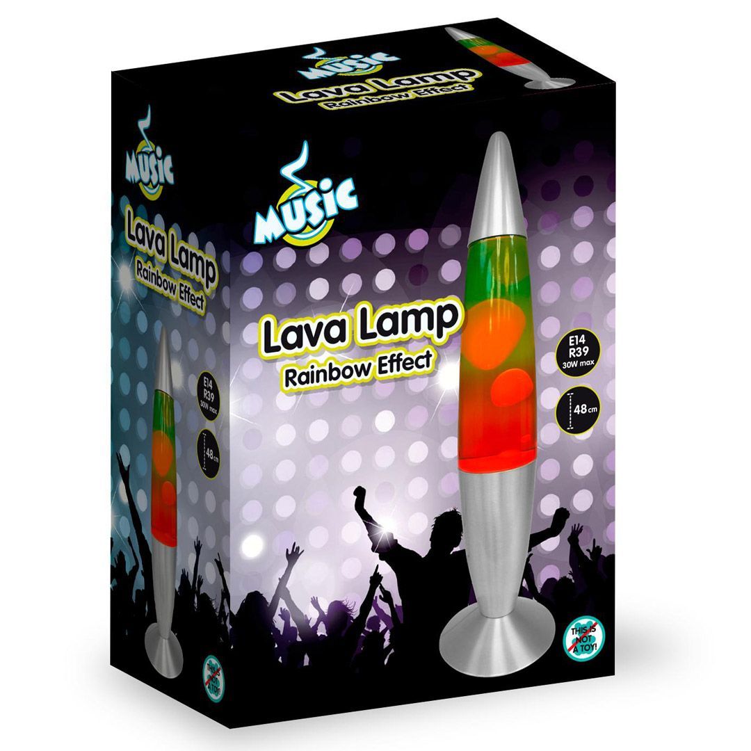Dersom du mangler litt farge på barnerommet er denne glitterlampen et godt valg. Den er både fargerik og fasinerende å se på. Den kan være god som nattlampe på barnerommet da den gir godt lys uten å irritere og på samme tid skape trygghet og glede. Men husk at den blir veldig varm, så man skal passe på å ikke komme borti den. Lavalampen er 48 cm høy.