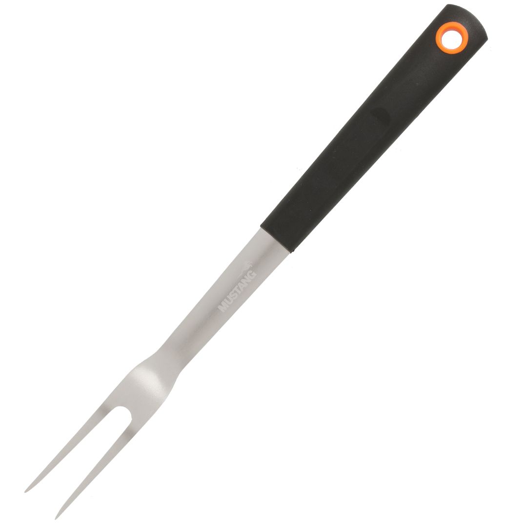 Mustang grillgaffel lengde 40 cm. Rustfritt stål, sort håndtak med oransjedekor.