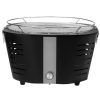Kullgrill med innebygget vifte som blåser luft direkte på kullet. kulletbren ner da mye hardere, renere og mer effektivt. Viften kan trinnløstreguleres på egen bryter. Grillen blir ikke varm på utsiden siden denhar doble vegger. Brenner så rent at kullet omtrent ikke ryker i dethele tatt. Størrelse: 39 x 38,2 x 23,6 cm Vekt ca 4,4 Kg.