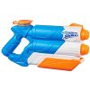 Gjør motstanderen skikkelig våt med dobbel sprut fra Super Soaker Twin Tide-vannblasteren som har to løp med det ene over det andre. Beveg håndtaket frem og tilbake for å sende ut to sammenhengende vannstråler fra løpene. Den blå og hvite Twin Tide-blasteren med to løp rommer opptil 1 liter.