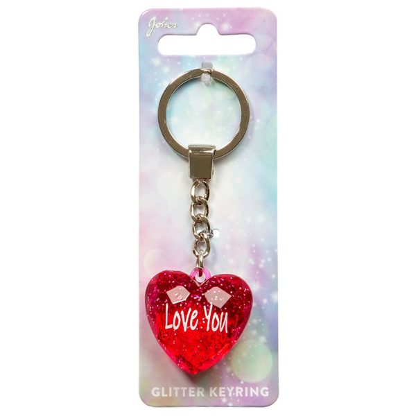 - Glitterhjerte-design med *Love You*-tekst.