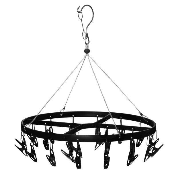 Praktisk hengende tørkestative egner seg godt til små vaskerom, badet eller balkongen. Også veldig praktisk for tørking av småvask som luer, hansker, sokker eller undertøy. Stativet har 24 klesklyper.