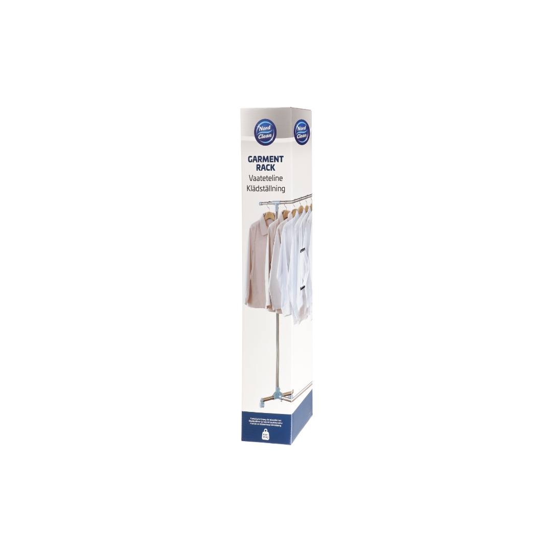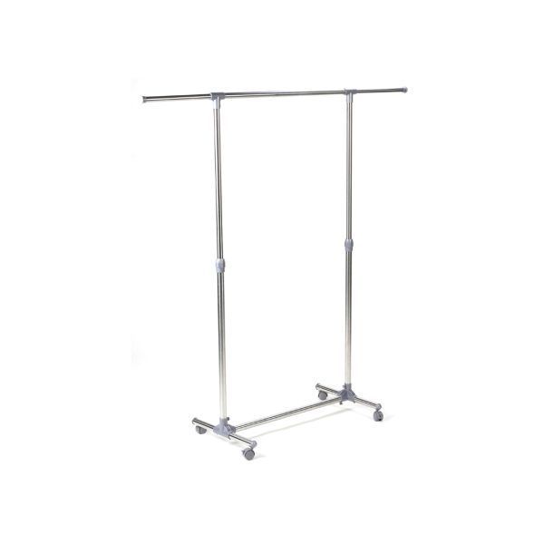 Et praktisk og lettmontert stativ for klesoppbevaring og lufting. Takket være de fire hjulene er stativet lett å flytte fra ett sted til et annet. Flott for å organisere og skape lagringsplass i vaskerommet, soverommet eller studenthybelen. Justerbar bredde 85-148 cm. Justerbar høyde 95-170 cm. Last 15 kg.