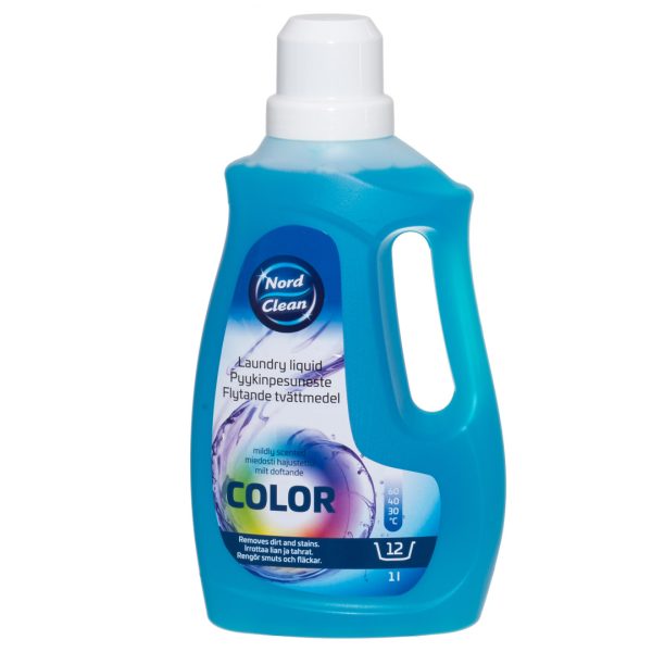 1 liter Nord Clean vaskemiddel for fargevask. Passer både til maskin- og håndvask. Ikke egnet for ull eller silke. Opptil 12 vask fra ‚n flaske. Mild duft. Inneholder: <5 % anioniske overflateaktive stoffer, enzym, parfymer, metylklorisotiazolinon, metylisotiazolinon, 2-brom-2-nitropropan-1,3-diol