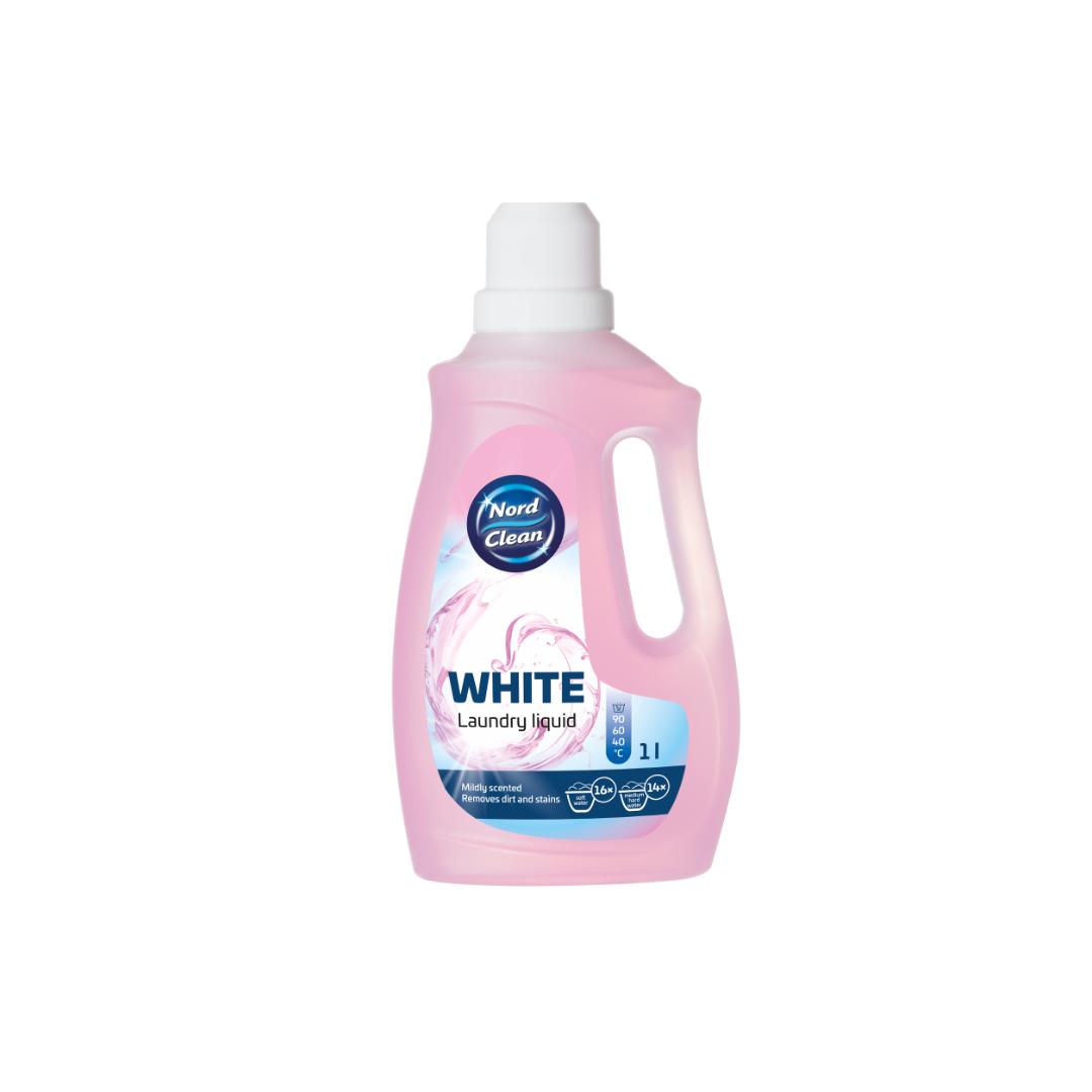 Nord Clean flytende vaskemiddel White 1 L er et vegansk vaskemiddel for hvitt tøy, til både maskin- og håndvask. Flasken rekker til opptil 16 vask. Vaskemiddelet er ikke egnet for ull eller silke.