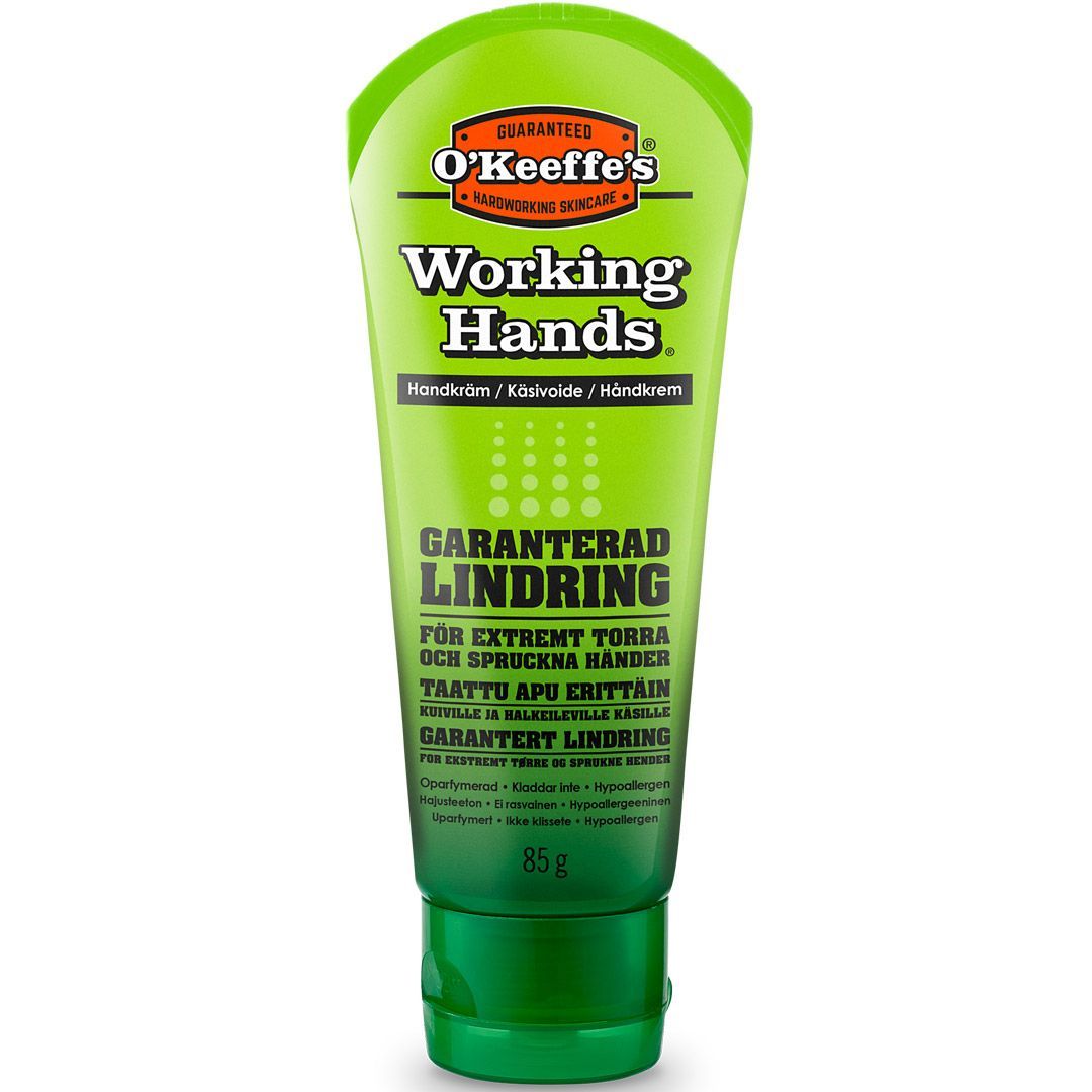 O’keeffe’s Working Hands er håndkremen for deg som har tørre, sprukne hender. Kremen er uparfymert og luktfri. Kremen myker opp tørr hud, tilfører fuktighet og beskytter huden mot ytterligere tap av fukt. Kremen etterlater ikke en klebrig hinne. O’keeffe’s Working Hands er USAs mestselgende håndkrem. Ved daglig bruk, er produktet klinisk bevist til å øke fuktighetsnivået umiddelbart. Forhindre ytterligere fuktighetstap. Gi en beskyttende barriere på hudens overflate. Gi en merkbar forskjell i løpet av dager.