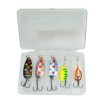 Slukene leveres i en praktisk boks med fem rom og oppheng for pigg, slik at du raskt finner riktig sluk når forholdene endrer seg. Boksen tåler både regn og fukt, og er enkel å rengjøre etter bruk.