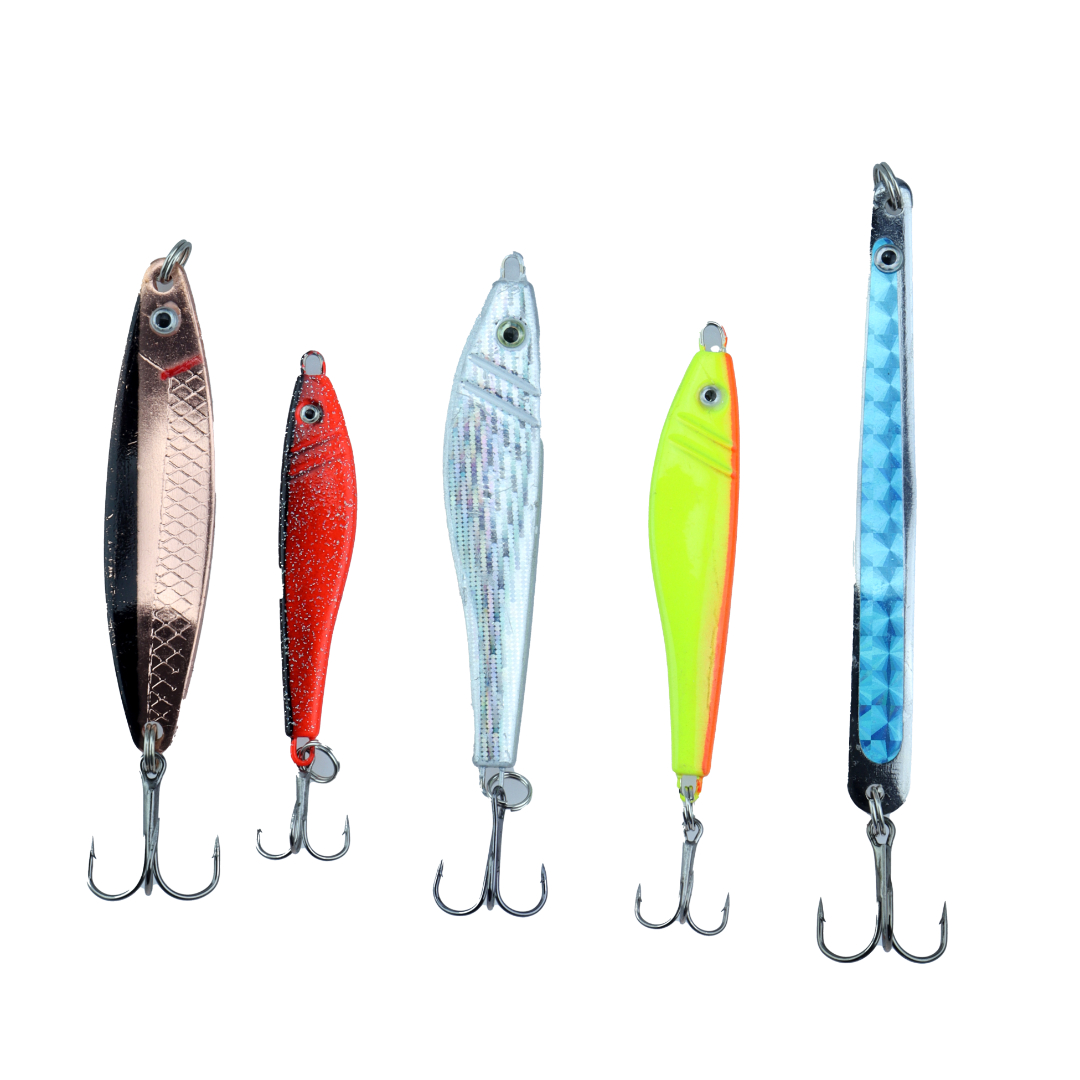 Dette sluksettet kombinerer variasjon i vekt og form slik at du enkelt kan tilpasse deg vær, strøm og dybde. De tyngre slukene gir lange kast i vind, mens de lettere variantene passer godt til gruntvann og roligere forhold. Bevegelsen i vannet er testet for å etterligne naturlig byttefisk og trigge hugg selv på dager med lite aktivitet.