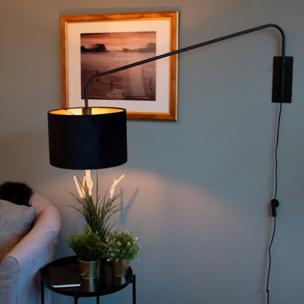 Panama vegglampe med Av/på brytere lett plassert tilgjengelig på ledningen. Denne vegglampen kan brukes med lampeskjerm.
