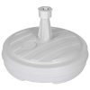 Spesifikasjoner: Farge: hvit. Materiale: Polyetylen. Mål: 42 x 26 cm (Ø x H). Vekt: 0,7 kg uten vann eller sand. Passer til parasollstenger på Ø18 til Ø32 mm. Volum: 13 liter. Fylles med vann eller sand.