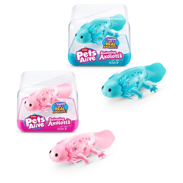 Blå, svømmende axolotl fra Pets Alive som aktiveres i kontakt med vann. Beveger seg automatisk med realistiske hale- og finnerykk. Et lett og kompakt badekamerat for lek i badekar, vask eller basseng. Batterier inkludert.