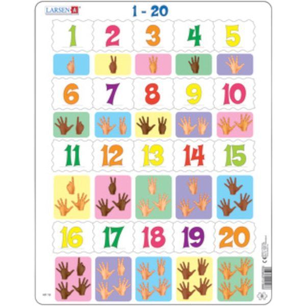 Lær tallene fra 1 til 20 på en interaktiv måte med dette pedagogiske puslespillet. Hver brikke viser et tall sammen med tilsvarende antall fingre, noe som hjelper barn med å forstå mengder og tallrekker.