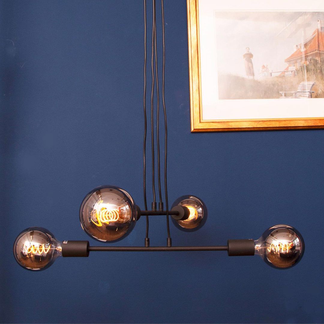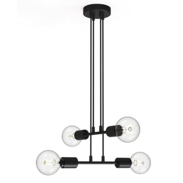 Ponce taklampe i sort med 4 lys. Diameter: 50 cm. Høyde: Justerbar, opptil 120 cm. Materiale: Metall. Lyspære: Medfølger ikke. Lysregulering: Ekstern bryter/dimmer. Maks effekt: 4x10W LED. Sokkel: E27. >>Klasse: KL. II. Spenning: 220-240V. IP klasse: IP20. CE merket: Ja.