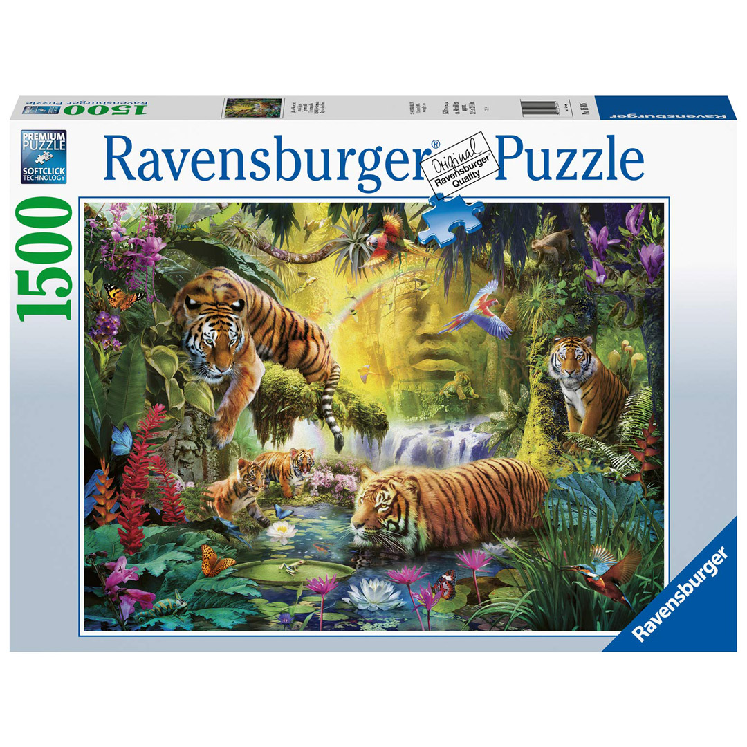 Puslespill fra Ravensburger med 1500 biter. Motiv: Fredfulle tigre. MĂĽl ferdig puslet ca 80 x 60 cm.