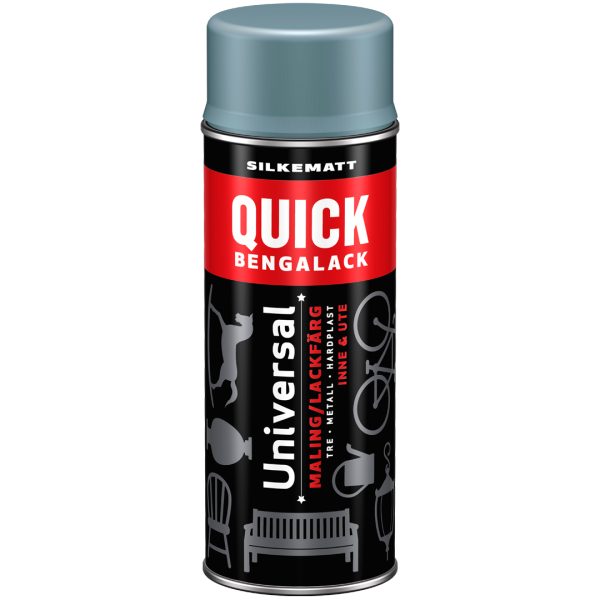Med Quick Bengalack Spray har du påføringsverktøy og maling i ett – rist og spray! Den er utviklet til å gi en sterk og slitesterk overflate til underlag av metall, tre og hardplast – inne som ute. Sprayen kommer i mange flott farger og er ideell når «vanskelige» gjenstander med mange krinker og kroker skal fornyes. Sprayen gir en flott, hard og silkematt overflate som tørker på 1 time! Raskt og enkelt!