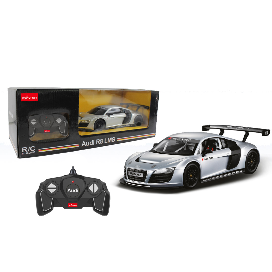 Rastar fjernstyrt Audi R8 med autentisk utseende. Skala: 1:18 Frekvens: 2,4 Ghz. Lengde 26 cm. Batterier ikke inkludert. Farge plukkes vilkårlig Leketøysmerke Rastar har på grunn av sin utmerkede kvalitet fått produksjons- og distribusjonslisenser for mer enn 300 biler fra 28 verdensberømte bilmerker, inkludert Ferrari, Lamborghini, Bugatti, Bentley, Porsche, BMW, Audi, Mercedes-Benz etc. Gjennom innovasjon av teknologi og anvendelse av nye materialer har Rastar utviklet en serie modellbiler som holder det samme eksteriøret med tilsvarende ekte biler. Kjør rundt i nabolaget med stil med denne tøffe Rastar Audi R8 Performance radiostyrte bilen! Bilen kommer med et realistisk og flott detaljert utseende. Fjernkontrollen gir deg full kotroll over bilen med funksjoner som lar deg kjøre fremover, bakover, til høyre og venstre.