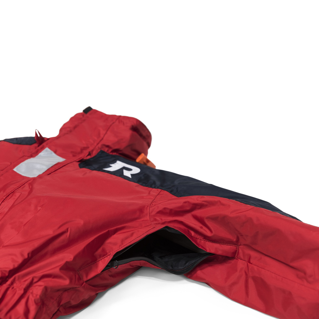 Ekstra lange åpninger på beina gjør den rask å ta av og på. Overlegen komfort, uten å gå på bekostning av sikkerheten. Færre, samt sterkere og tapede sømmer hindrer vann-inntrengning. Vannavisende glidelås for lufting under armene. Kraftig ytterstoff i slitesterk og vindtett/vannavisende nylon. Doble og tapede sømmer hindrer rifter og vannlekkasjer. Kraftig YKK glidelås i front.