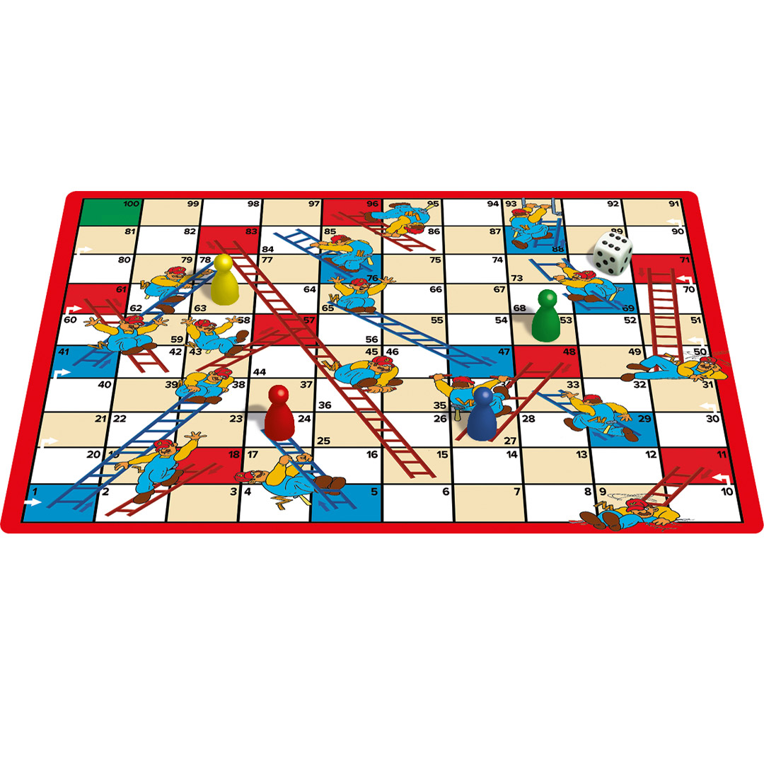 Rull terningen og begynn kappløpet! Er du heldig, lander du på en rute med blå stige og hopper foran de andre spillerne. Men pass deg for de røde stigene, for der faller du ned. Vinneren er den som kommer først i mål!