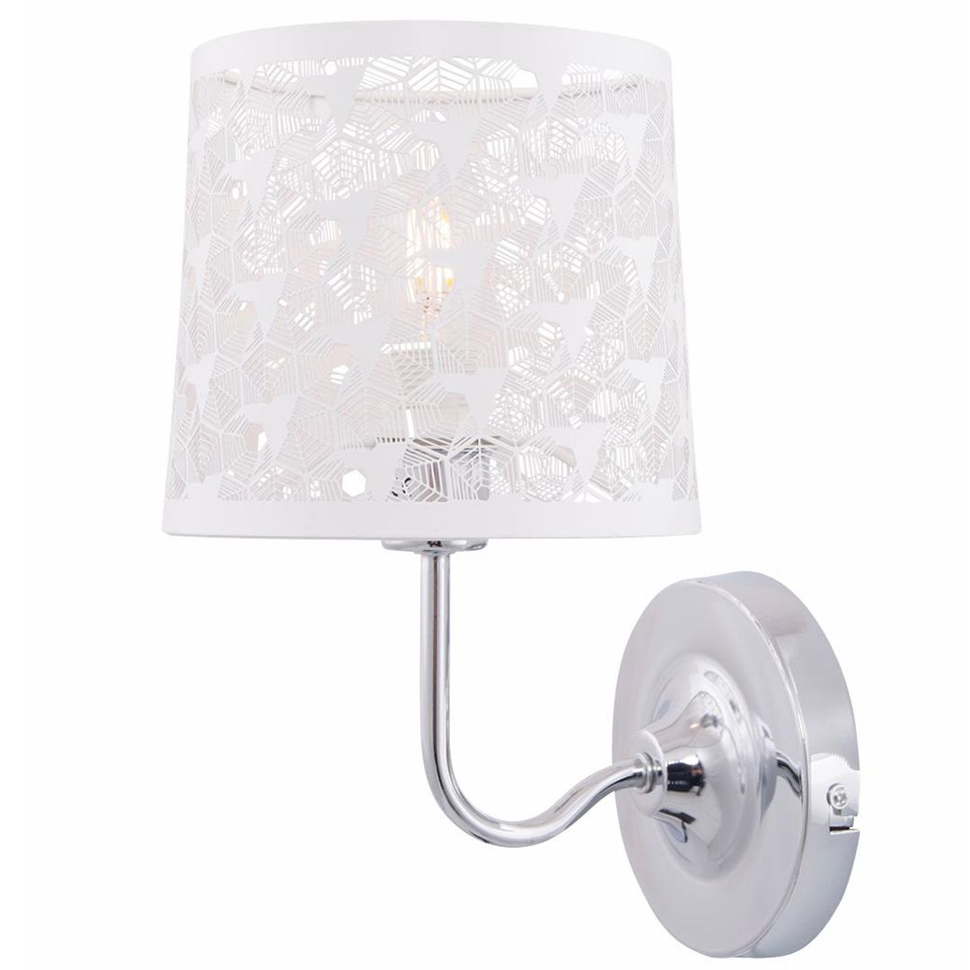 Riga vegglampe er en meget dekorativ lampe med skjerm laget i metall. Mønsteret i skjermen gir et fint fargespill i romm et, mens den ogsåsprer lyset bra. Denne lampen blir solgt u ten lyspærer så du selv kanvelge etter behov, se vårt store lyspære sortiment. ?Dybden er 20 cm.?Høyden er 27 cm?Ledn ingens lengde er 150 cm. ?Materiale: Metall ogplast. ?Lyskil de: Medfølger ikke. Vi anbefaler Scan-Light LED pærer.?Lysre gulering: On/Off bryter på ledningen. ?Energiklasse: A++-E?T ekniskdata: Maks 42 Watt E14 KL. II 220~240V IP20 CE